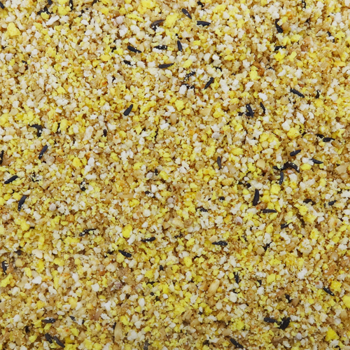 加工フード(パン、卵、糖みつ、砂糖、油脂等)、オーツ麦(皮むき)、エゴマ、あさの実、ニガーシード、アワ(皮むき)、リンゴ、その他ビタミン・ミネラル類等