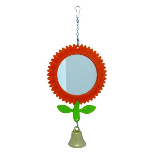 遊ぶのが大好きな小鳥たちのためのおもちゃです。お花型の鏡に鈴がついて楽しい!小鳥のストレス解消に。※アソート商品のため、カラーは異なります。