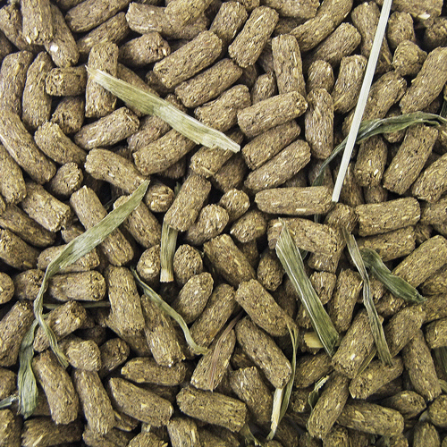 加工フード(チモシーミール、アルファルファミール、ホミニーフィード、小麦ふすま、小麦粉、脱脂大豆、大麦糠、タンポポ粉末、オオバコ粉末、イワミライト、各種ビタミン・ミネラル、食塩、炭酸カルシウム、ヌクレオチド)、大麦若葉