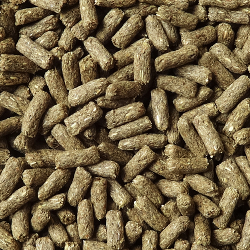 牧草(チモシーミール、アルファルファミール)、小麦粉、小麦ふすま、大麦糠、アップルファイバー、タンポポ粉末、オオバコ粉末、ゼオライト、桑の葉粉末、酵母抽出物( ヌクレオチド源)、乳酸菌(フェカリス菌)、ミネラル類(Cl、Na、Ca、Zn、Cu、Co、P、I)、アミノ酸類(Met)、ビタミン類(コリン、ナイアシン、C、パントテン酸、B6、E、イノシトール、B2、B1、A、葉酸、K、D3、B12)